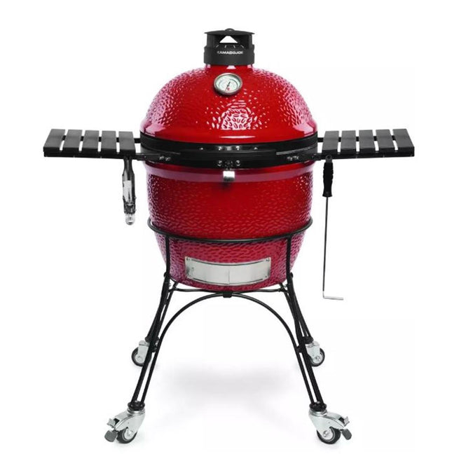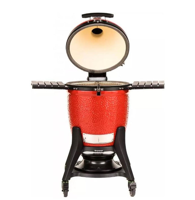 De rode Classic II stand alone houtskoolbarbecue is een keramische barbecue waarmee u kunt koken, braden en roken. U kunt uw eten dus op verschillende manieren bereiden. De barbecue kan tijdens alle weersomstandigheden gebruikt worden en heeft een grill met een diameter van 45 centimeter. Dit product wordt standaard geleverd met gereedschap om uw rooster verantwoord op te tillen en te verplaatsen. Bovendien krijgt u ook een product waarmee u de aslade gemakkelijk kunt openen en schoonmaken. De keramische wand van de barbecue zorgt ervoor dat uw vlees zijn vocht behoudt en dus lekker mals blijft.