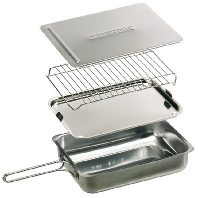 Met de Camerons rookoven krijg je die subtiele rooksmaak in de zalm, het vlees of groente. Wanneer je kiest voor een ander soort rookmot (houtsoort) zal je ook een andere smaak aan het eten krijgen. Pak de braadslede, voeg wat rookmot toe en sluit dit af met de lekplaat. Plaats het rooster op wat aluminiumfolie, zo blijft de lekplaat schoon en hoef je deze tussen de gerechten door niet schoon te maken.Op het rooster leg je het eten en het schuifdeksel sluit de braadslede af en maakt het tot een rookoven. Door de speciale zuurstofontwikkeling smeult de mot en krijg je een rookontwikkeling die voor die heerlijke rooksmaak zorgt. Rookmot is in verschillende soorten verkrijgbaar, experimenteer met de smaken!De rookoven bestaat uit de volgende onderdelen:• de oven/braadslede• een schuifdeksel• een rooster• een lekplaat• rookmot
