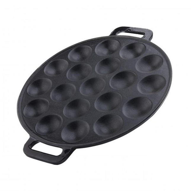 Met deze poffertjes pan maak je in een handomdraai zelf de lekkerste poffertjes! De zwarte pan is geschikt voor het maken van 19 poffertjes per keer en is gemaakt van gietijzer. Daarnaast beschikt de pan over een geëmailleerde bodem die de warmte goed geleid en vasthoudt. De pan heeft een diameter van 24 cm en is geschikt voor gas, elektrisch, keramisch en inductie. Gewicht: 2,3 kg. Na gebruik met de hand reinigen.