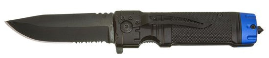 De Escape K1 van Homey's is een reddingsmes met een gedeeltelijk gekarteld lemmet van zwart gecoat roestvrij staal. Zoals het hoort bij een reddingsmes is ook de Escape K1 voorzien van een glasbreker van Tungsten staal en een gordelsnijder. Hierdoor ben je altijd voorbereid in het geval van nood en is het breken van een ruit of het doorsnijden van een veiligheidsgordel geen enkel probleem! Voor de vergrendeling van het lemmet is een linerlock aanwezig met het "QuickSafe"-systeem. Dit betekent dat je het lemmet met één hand kunt in- en uitklappen en heb je je andere hand vrij. Daarnaast is het mes voorzien van een fraai handvat die gemaakt is van zwart aluminium met opvallende rode accenten op de voorzijde. Op de achterzijde van het handvat zit een clip. Specificaties Merk Homeij  EAN 8711942513207 Materiaal Lemmet RVS Materiaal Heft Aluminium Lengte 20,5 cm Gewicht 144 cm