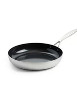 Deze Koekenpan 'Geneva' van Greenpan is een gezonde keuze voor een beginnende thuischef. Door de keramische anti-aanbaklaag bakt je eten een stuk minder snel aan. Greenpan staat bekend om zijn duurzaamheid en is één van de weinig merken die zijn eigen anti-aanbaklagen ontwikkeld.    Gebruik en onderhoud van de Geneva Koekenpan Deze pannen zijn gemaakt van aluminium met een keramische coating. Het kan zijn dat de pan wat hol is als die koud is, maar deze trekt perfect recht als je deze opwarmt. Als je de pan écht jarenlang in perfecte staat wil houden raden we handwas aan.   Om een thermische schock te voorkomen raden we altijd aan om, vooral met inductie, de temperatuur niet te snel op te laten lopen. Vermijd ook koud water bij een hete pan, dus laat de pan eerst even afkoelen alvorens af te spoelen.