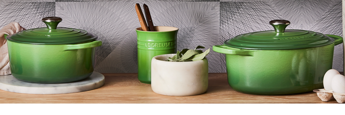 Ontdek de nieuwste kleur van Le Creuset: Sea Salt. Een frisse lichtblauw/groene kleur die straalt in jouw keuken. De Signature braadpan van Le Creuset heeft een diameter van 24 cm. De ronde pan van geëmailleerd gietijzer heeft een inhoud van 4,2 liter, bedoeld voor 4 tot 6 personen. De braad-/ stoofpan heeft extra grote grepen. De ronde vorm maakt de Signature braadpan geschikt voor soep en stoofgerechten als boeuf bourguignon. De zware gietijzeren Signature stoof- en braadpan van Le Creuset is voorzien van een duurzame laag email aan de binnen- en buitenzijde. Het gietijzer zorgt voor een gelijkmatige warmteverdeling door de hele pan, ook op laag vuur. De gietijzeren deksel draagt bij aan de warmteverdeling en zorgt zo dat uw braadstuk rondom regelmatig gaart. De grepen van de pan zijn extra groot, waardoor de pan makkelijker te hanteren is, bijvoorbeeld wanneer u ovenhandschoenen draagt. U kunt de pan, dankzij de roestvrijstalen knop, ook in de oven zetten tijdens het stoven. De emaillelaag is ondoordringbaar en glad en zeer goed bestand tegen schokken en krassen. De Le Creuset stoofpan is eenvoudig schoon te houden en kleur-, geur- en smaakneutraal. Het email beschermt het gietijzer ook tegen invloeden van buitenaf, zoals voedselzuren.Le Creuset biedt een levenslange garantie op fabricage- en kwaliteitsdefecten van het gietijzer.Reinig de Le Creuset Signature stoof- en braadpan met warm water en afwasmiddel.