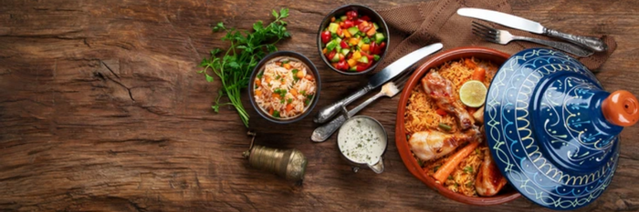 Verrijk je culinaire reis met onze betoverende Tajine-ervaring! Laat je meevoeren naar de levendige en aromatische wereld van Noord-Afrikaanse smaken, waar de tajine pan het ultieme symbool is van traditionele gastronomie en gastvrijheid. Ontdek de magie van langzaam sudderende stoofgerechten, waar kruiden, groenten, vlees en fruit samensmelten tot een onweerstaanbare explosie van smaken.