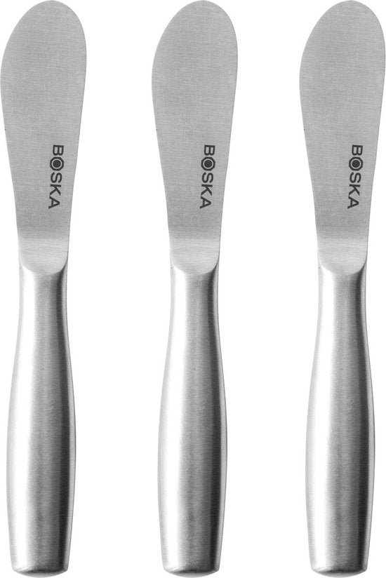 Geef je borrelplank een upgrade met de Smeermessenset Mini Copenhagen. Deze set bestaat uit drie kleine messen, ook wel botermessen genoemd. Speciaal ontworpen voor het smeren van diverse smeersels en het bereiden van smaakvolle hapjes. Waarom dit de ideale smeermessenset voor jou is: • Hoogwaardig roestvrijstaal: De kleine smeermessen zijn duurzaam en vaatwasserbestendig, ideaal voor dagelijks gebruik.• Veelzijdig gebruik: Perfect voor het smeren van heerlijke delicatessen zoals kruidenboter, verse kaas en pesto.• Lichtgewicht en handig: Deze messen liggen comfortabel in de hand en zijn gemakkelijk te hanteren, ideaal voor zowel formele als informele gelegenheden.• Stijlvol design: Modern en minimalistisch. Deze messen zijn niet alleen functioneel, maar ook een prachtige toevoeging aan je keuken of borreltafel.
