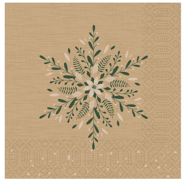 Maak jouw kerstdiner nòg feestelijker met de servetten van Duni! Met een fraai gedekte tafel tover je bij jouw gasten een glimlach op hun gezicht. Dit servet is gemaakt van dunicel. Het voelt zacht aan en heeft een hoog absorberend vermogen. Dit servet uit de serie Natural Charm is beige van kleur en is gedecoreerd met een ster van bladeren. In de verpakking zitten 20 stuks en de afmeting van de servetten zijn (ongevouwen) 33 x 33 cm. Leuk te combineren met het Natural Charm tafelkleed!  Specificaties Merk Duni  EAN 7321012028152 Afmeting 33 x 33 cm Aantal lagen 3-laags Inhoud verpakking 20 stuks
