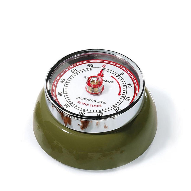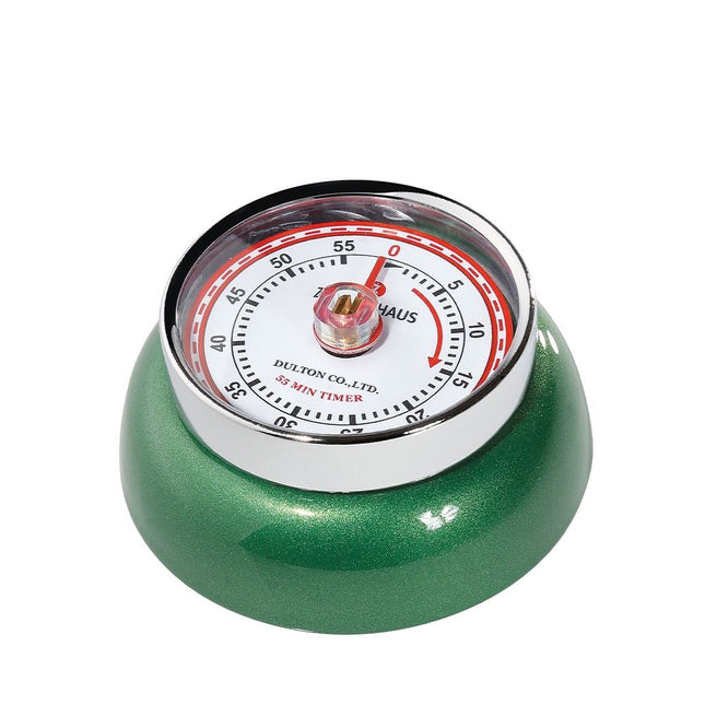 De kookwekker SPEED van het merk Zassenhaus heeft een trendy retro-look. Het is gebaseerd op het Amerikaanse designtijdperk van de jaren '40 en '50. De charmante kookwekker is ontworpen door Yasuaki Sasamoto. De Japanner staat bekend om zijn keukenaccessoires en meubelen, die purisme combineren met een vleugje humor. Ook de timer met zijn vrolijke kleuren brengt je in een goed humeur. Als echt designobject is het veel te mooi voor de ladekast. Dankzij de magneet aan de achterkant bevestig je het stijlvolle accessoire aan je afzuigkap, koelkast en andere metalen oppervlakken.De kookwekker heeft een maximaal instelbare tijd van 55 minuten. Na afloop van de ingestelde tijd klinkt een authentieke ringel.Specificaties: Merk: Zassenhaus Artikelnummer: 072303 EAN: 4006528072242 Diameter: 7 cm Hoogte: 3 cm Kleur: Groen Materiaal: metaal Reiniging: handafwas Timer bereik: 55 minuten