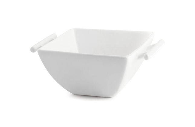 Soepkom met twee oortjes. Het servies van Yong is van stevig porcelein, mooi vierkant afgewerkt, microwave- en vaatwasmachinebestendig.Afmetingen: 14 x 14 x 6 cm