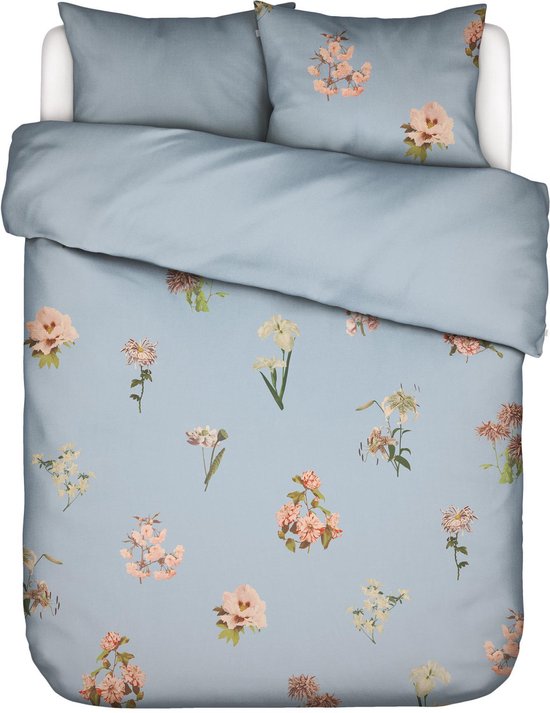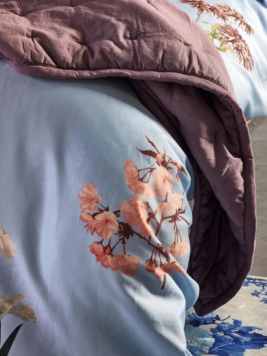 Een romantisch luchtige geplaatste bloemenprint op een rustgevende uni achtergrond. In de Annebella vind je verschillende bloemen zoals een gestreepte camelia, lelies, Japanse pioenroos, kersenbloesem, Japanse iris, chrysant en lotus bloem ontdekken. Deze bloemen zijn afkomstig uit het Rijksmusen. Het zijn ingekleurde foto's gemaakt door de Japanse fotograaf Kazumasa Ogawa, rond 1890. Door de ruime plaatsing op een zachte, licht contrasterende achtergrond onstaat er een heel innemende print. Sla het dekbedovertrek om het geheel te balanceren met een rustgevende uni in dezelfde kleur.