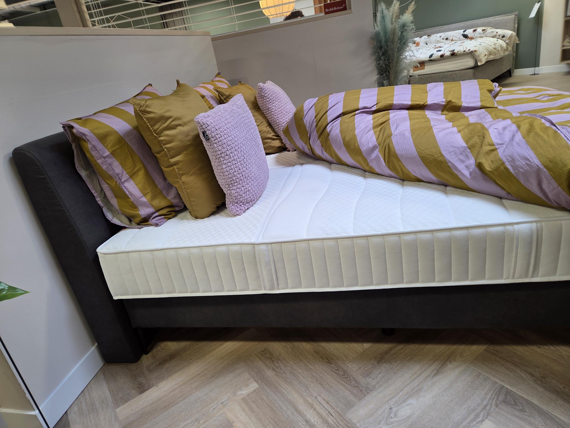 Dit showmodel biedt je de kans om topkwaliteit boxspring in huis te halen tegen een aantrekkelijke prijs, terwijl jij zelf bepaalt welke matrassen het beste aansluiten op jouw slaapbehoefte.