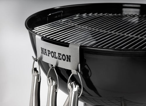 Hang de houtskoolkogel-gereedschapshanger gewoon aan de zijkant van uw kogelgrill en klaar is Kees. De RVS constructie is probleemloos bestand tegen alle weersomstandigheden. Dit product is speciaal gemaakt voor het houtskool-kogelgrillmodel. * Met Napoleon-logo * Past op kogelgrills met een diameter van 56 cm * Voor het ophangen van 3 stuks grillbestek