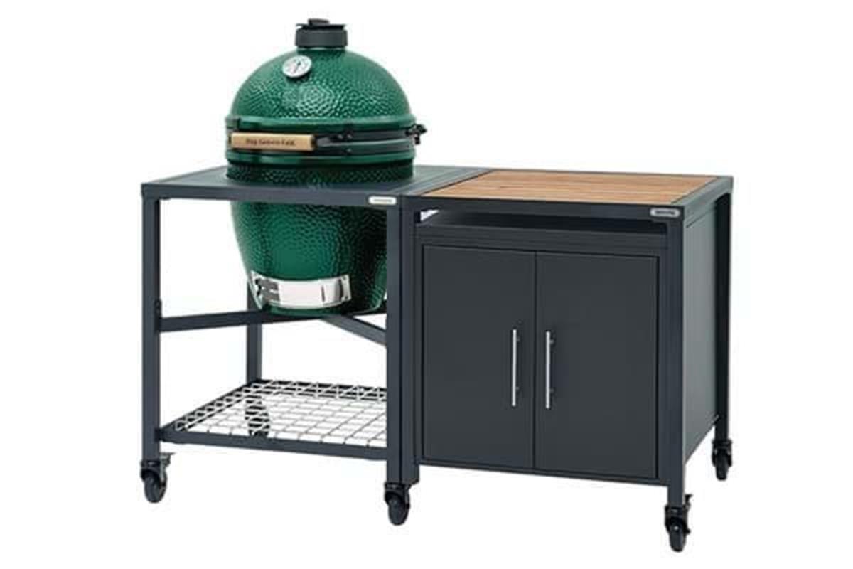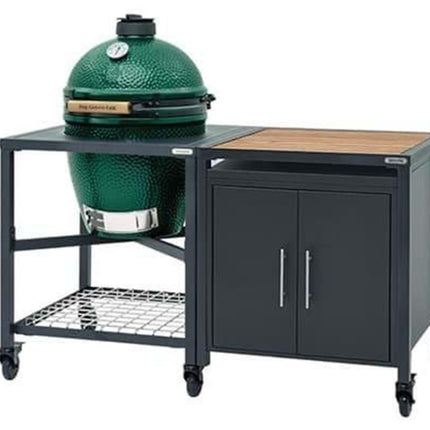 Het Big Green Egg uitbreidingsframe is een mooie en handige toevoeging aan uw huidige opstelling. Het mooi afgewerkte frame heeft een Acacia houten bovenkant en is waterdicht. Naast werkruimte biedt het frame ook nog eens opbergruimte die toegangkelijk is met de twee deurtjes. Ten slotte kunt u er voor kiezen om uw outdoor keuken mobiel te maken en wieltjes onder het frame te monteren, de gaten zitten er al.