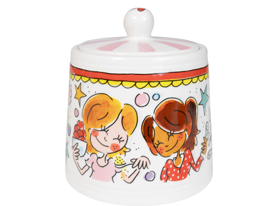 Breng een vleugje gezelligheid aan je koffie- of theemomenten met de ronde suikerpot uit de “Even Bijkletsen” collectie van Blond Amsterdam. Deze charmante suikerpot is perfect voor het bewaren van suiker en staat prachtig op tafel tijdens je koffie- of theepauzes. Versierd met vrolijke illustraties in de kenmerkende, speelse stijl van Blond Amsterdam, voegt deze suikerpot een kleurrijke en gezellige touch toe aan je servies. De suikerpot is stevig en duurzaam, ideaal voor dagelijks gebruik. Het is een geweldige aanvulling op je Blond Amsterdam collectie en een perfect cadeau voor vrienden en familie. Ontdek meer vrolijke items uit de “Even Bijkletsen” collectie of in onze Blond sale en breng wat Amsterdamse gezelligheid in huis!