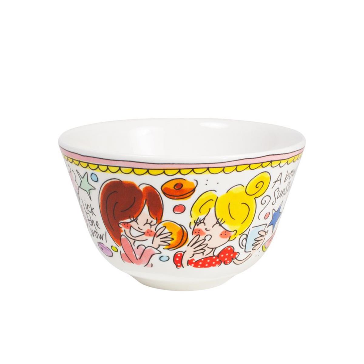 Deze vrolijke Blond Amsterdam kom is onderdeel van de welbekende Even Bijkletsen serie en heeft een diameter van 14 cm. De rand van de kom heeft een roze kleur, wat onderdeel is van deze vernieuwde lijn. De kom staat vol met herkenbare en vrolijke illustraties en aan de binnenkant staat een rood hart. De aardewerk kom is perfect om te gebruiken voor het ontbijt of om een lekkere kom soep of hapjes in te serveren.