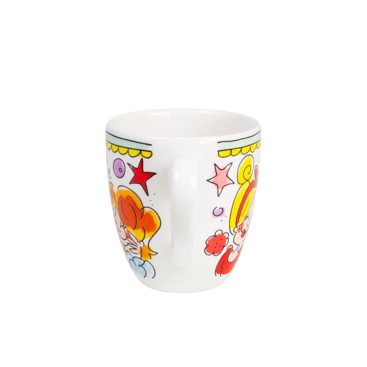 Deze vrolijke Blond Amsterdam mini mok is onderdeel van de welbekende Even Bijkletsen serie en heeft een inhoud van 200 ml. De rand van de mini mok heeft een mint kleur, wat onderdeel is van deze vernieuwde lijn. De mok staat vol met herkenbare en vrolijke illustraties en aan de binnenkant staat een rode ster. De aardewerk mok is perfect voor een heerlijk kopje koffie of thee.