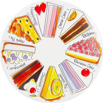 Met dit vrolijke Favorite Cakes taartplateau van Blond Amsterdam wordt het serveren van een stukje taart nog leuker! Het plateau beschikt over illustraties van de lekkerste stukjes taart zoals Carrot cake, Chocolate cake, Apple pie en Lemon pie. Met een diameter van 33 cm past er genoeg op. Ook leuk om cadeau te doen en perfect om te combineren met de rest van het Blond Amsterdam servies.