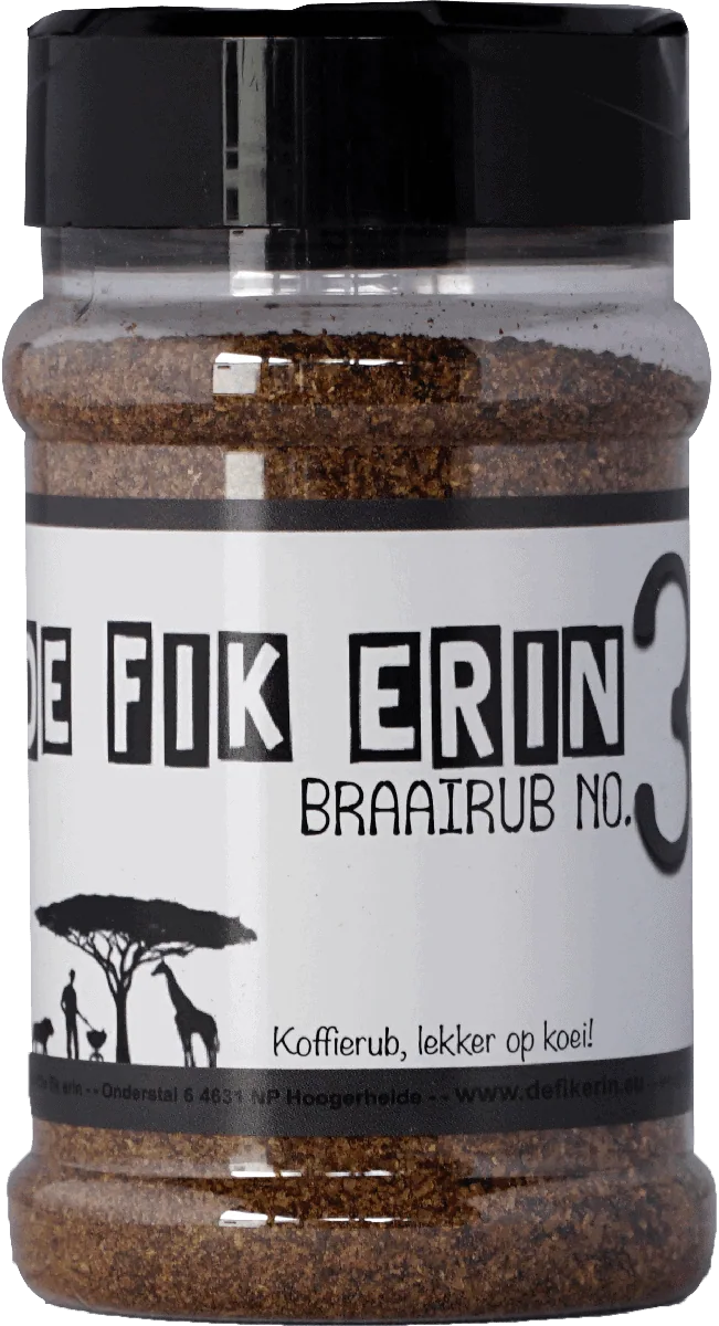 De Braairub no.3 heeft een zeer sterke smaakbeleving, door de combinatie van verschillende specerijen en gemalen koffiebonen geeft deze rub een heerlijke boost aan je vlees! Heerlijk op Short ribs, Brisket, Chuck roast en Pulled beef!