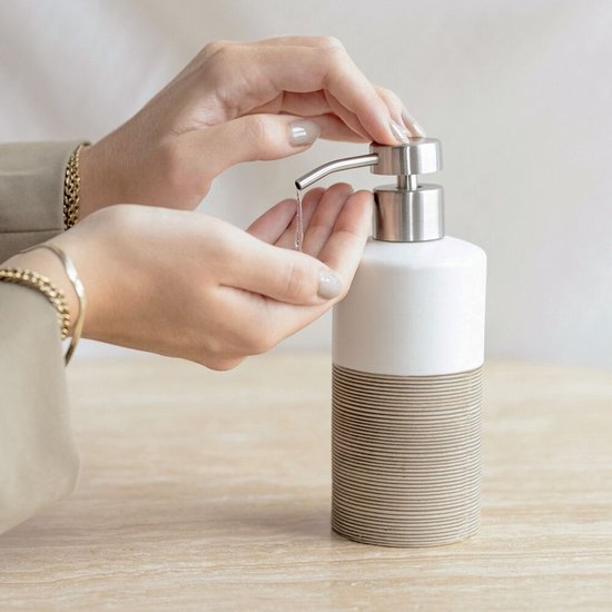 De handgeschilderde Doppio zeepdispenser van Sealskin is uitgevoerd in porselein. De geribbelde onderkant en gladde bovenkant vormen een geraffineerde combinatie van kleur en materiaal die daarbij ook stevig in de hand ligt. Daarnaast is deze zeepdispenser natuurlijk ook gewoon handig en hygiënisch.