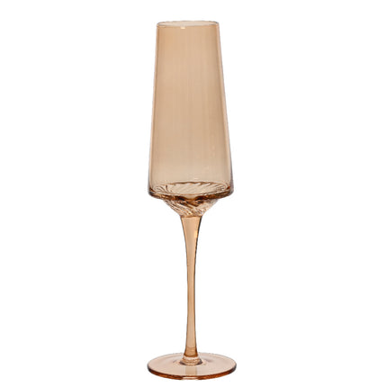 Dit stijlvolle, hoge drinkglas heeft een diameter van 7 cm en is 26 cm hoog. Gemaakt van amberkleurig glas met een inhoud van 280 ml. Perfect om champagne in te serveren tijdens de feestdagen!
