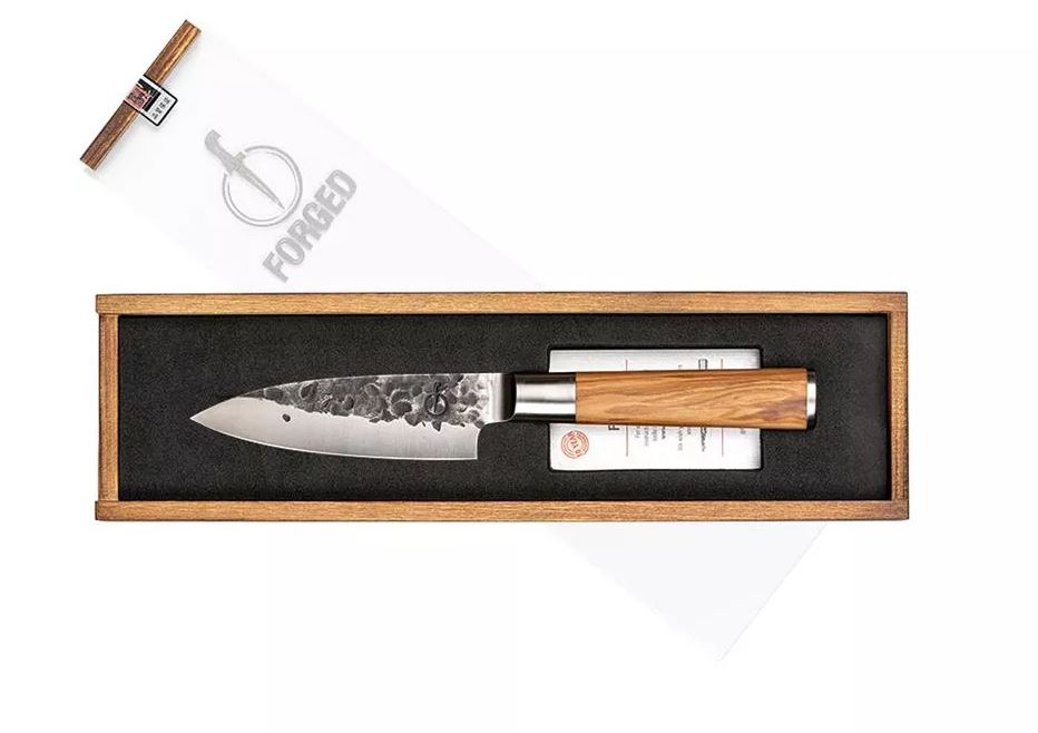 De perfecte mix van Japanse finesse en Europese veelzijdigheid. Culinaire creativiteit met het Forged Olive Petty mes. Gesmeed uit hoogwaardig 440c staal en met een rockwell hardheid van 58, is dit mes een ware meester in de keuken. Het petty knife is jouw betrouwbare metgezel voor precisiewerk, van het schillen van groenten tot het uitvoeren van delicate snedes. Voor een keuken die draait op prestatie en vakmanschap, kies je voor Forged.