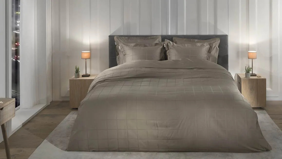 Taupe is een warme, sfeervolle kleur en in combinatie met het ingeweven ruitpatroon van het Diamante dekbedovertrek vormt het een mooi plaatje. Het Heckettlane dekbedovertrek is een elegant dessin. De voorzijde heeft een groot ruitpatroon, de achterzijde is effen van kleur. Combineer het in een landelijk, modern of juist trendy interieur. Je kunt er dankzij de basic print vele kanten mee op.