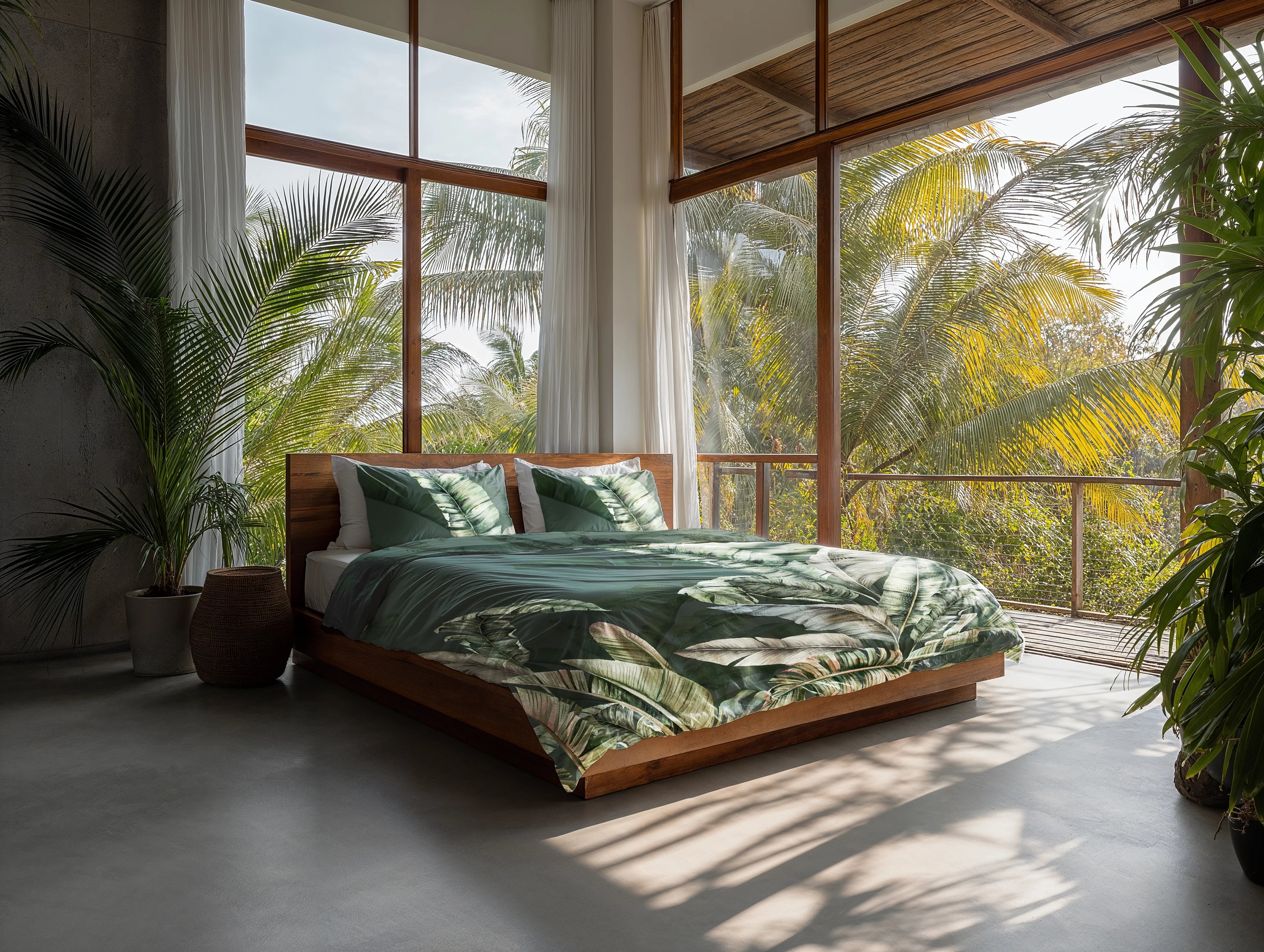 Dekbedovertrek Sarani brengt een vleugje tropisch groen naar je slaapkamer. De grote bladeren geven een rustige, natuurlijke uitstraling die meteen...