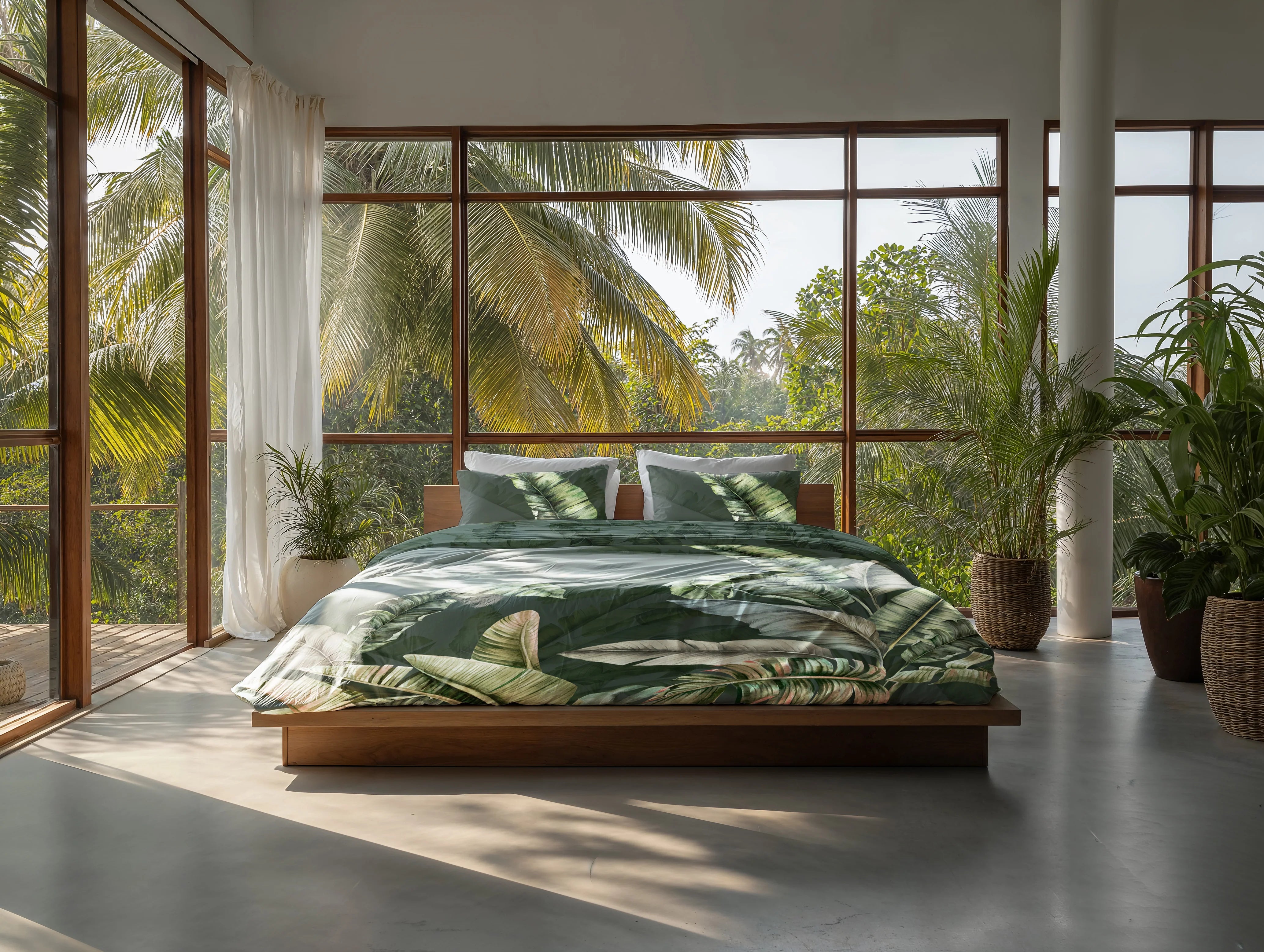 Dekbedovertrek Sarani brengt een vleugje tropisch groen naar je slaapkamer. De grote bladeren geven een rustige, natuurlijke uitstraling die meteen...