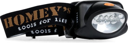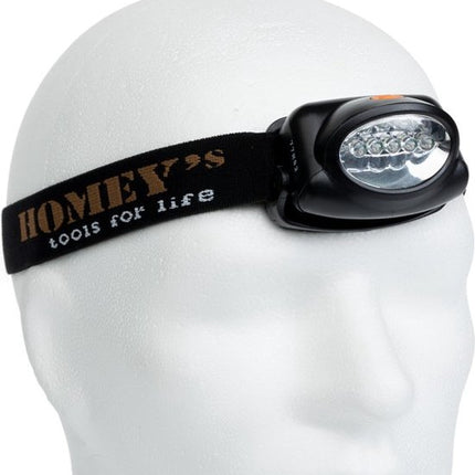 Deze hoofdlamp genaamd WatchLight is van het merk Homeij en heeft 5 LED lampjes waarvan 3 witte en 2 rode. Er kan geschakeld worden tussen het rode en witte licht. De LED-verlichting heeft een sterkte van 12 lumen waarmee tot 30 meter kan worden geschenen. De lichthoek is verstelbaar tussen 30 en 70 graden, hiermee kunt u het licht op de grond richten of in de verte. De behuizing van de hoofdlamp is gemaakt van ABS kunststof, dit is zeer stevig. WatchLight werkt op 3 AAA batterijen.
