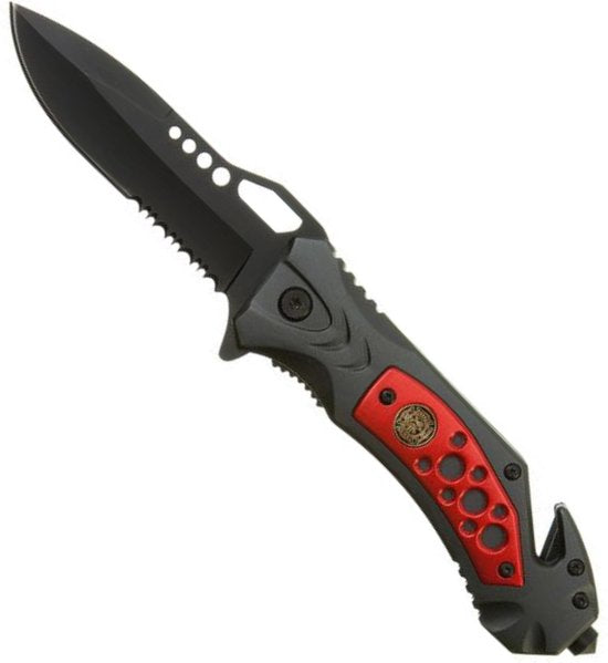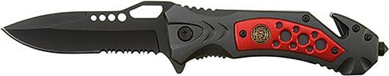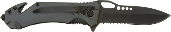 De Escape K1 van Homey's is een reddingsmes met een gedeeltelijk gekarteld lemmet van zwart gecoat roestvrij staal. Zoals het hoort bij een reddingsmes is ook de Escape K1 voorzien van een glasbreker van Tungsten staal en een gordelsnijder. Hierdoor ben je altijd voorbereid in het geval van nood en is het breken van een ruit of het doorsnijden van een veiligheidsgordel geen enkel probleem!