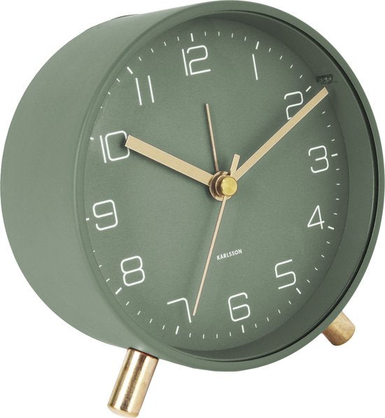 De strakke Karlsson Lofty tafelklok staat stevig en stijlvol op zijn gouden pootjes. Hij heeft een duidelijke tijdsaanduiding. Dankzij de alarmfunctie is dit klokje ook te gebruiken als wekker.