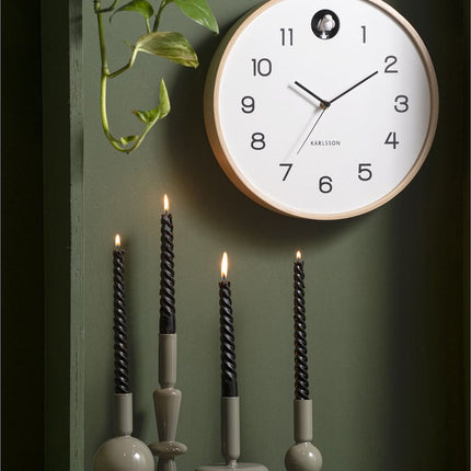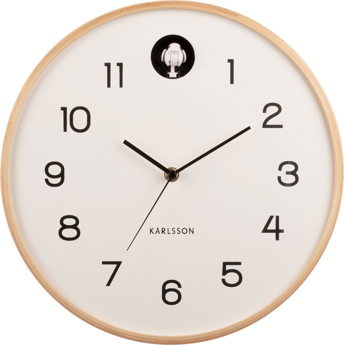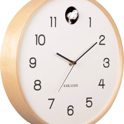 Karlsson Wall Clock natural Cuckoo birch wood - white