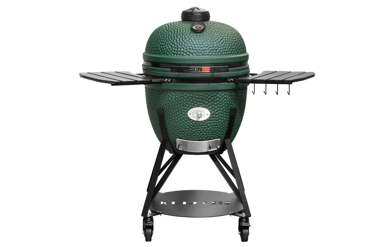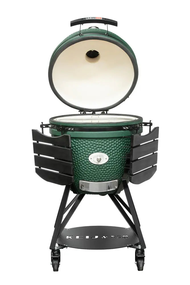 Met een roosterdiameter van 47 centimeter is deze barbecue perfect voor grote gezinnen. Zoals gezegd is de barbecue gemaakt van zeer hoogwaardig dikwandig cordieriet keramiek. Het keramiek is uitermate goed bestand tegen extreme hitte. De gietijzeren onderdelen zijn professioneel gepoedercoat. Uiteraard is het rooster van gemaakt van roestvrij staal. De barbecue is voorzien van extra grote wielen, en is dus eenvoudig verplaatsbaar. Voor de Keij Kamado zijn alle denkbare accessoires en uitbreidingen tegen zeer scherpe prijzen beschikbaar. Zo is er bijvoorbeeld het divide and conquer systeem, maar er zijn ook platesetters, deflectors, pizzastenen en gietijzeren roosters verkrijgbaar.