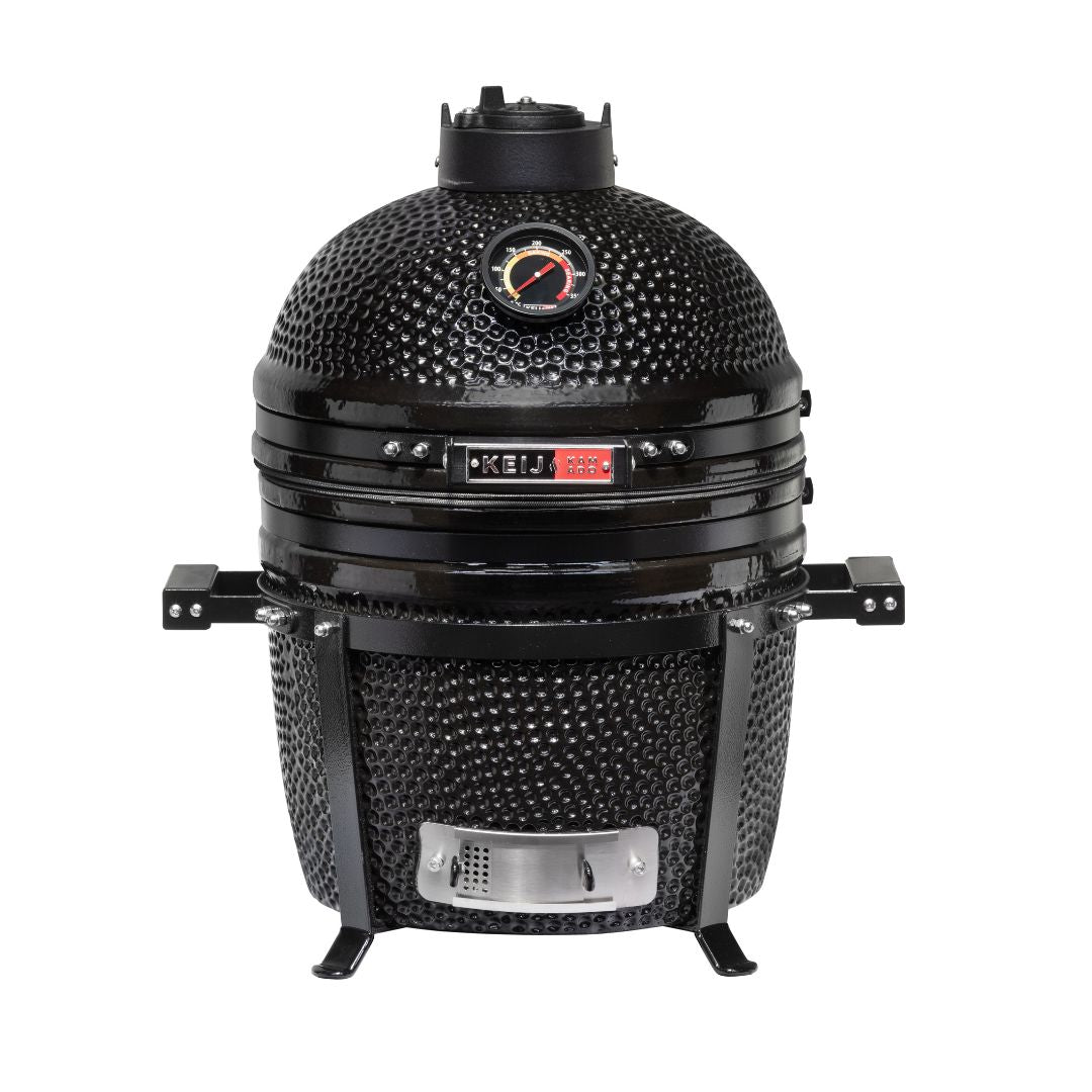 Met deze compacte kamado barbecue geniet je het hele jaar door van heerlijke barbecuegerechten. Door het keramische materiaal verbruikt de barbecue minder houtskool en blijft de temperatuur stabiel, zelfs bij koud weer.