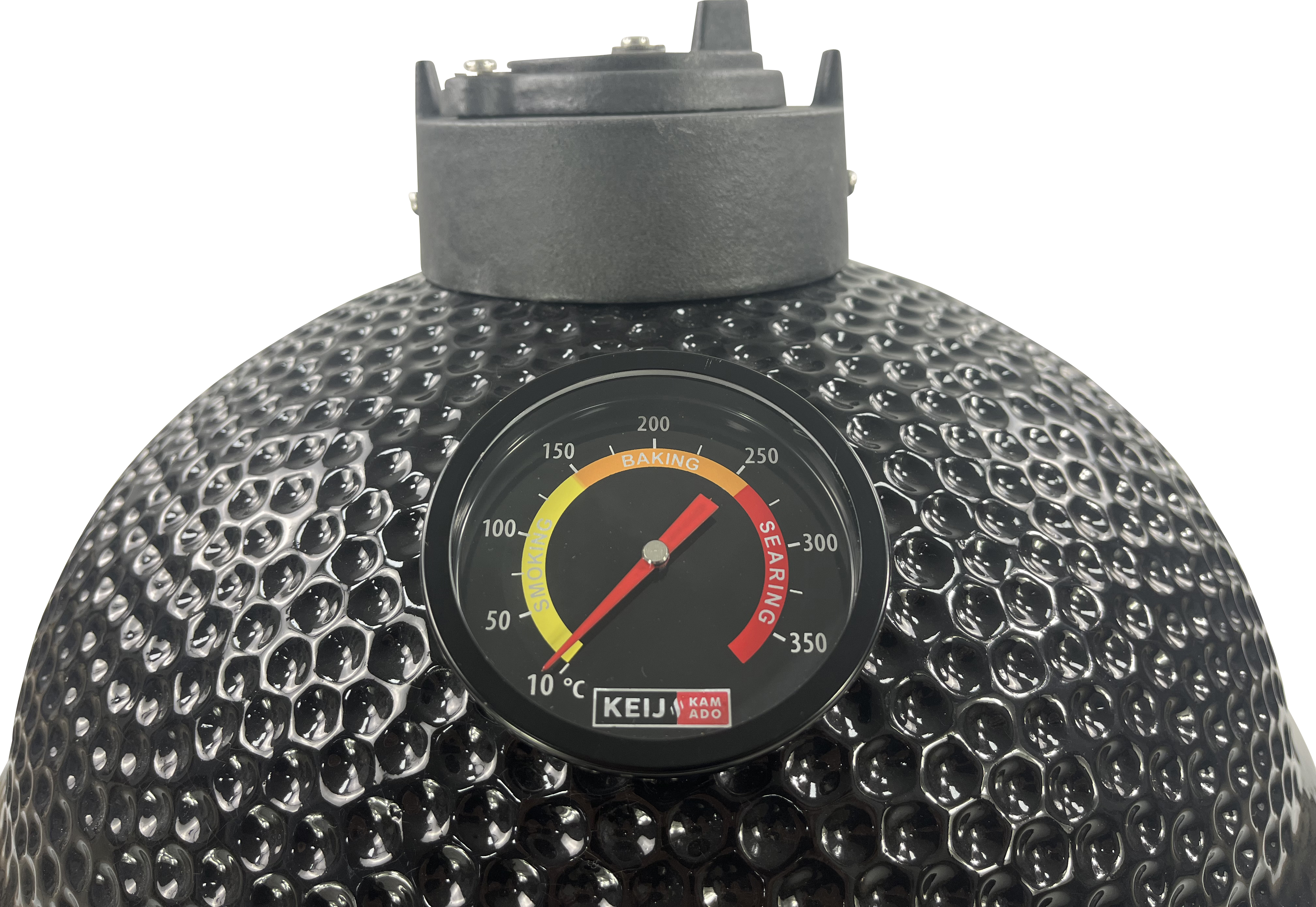 Deze kamado barbecue wordt geleverd met het veelzijdige Divide & Conquer systeem, waarmee je op verschillende niveaus tegelijk kunt koken. Zo kun je bijvoorbeeld vlees grillen terwijl je groenten of andere gerechten indirect bereidt. De ingebouwde thermometer in de deksel helpt je om de temperatuur nauwkeurig te monitoren.