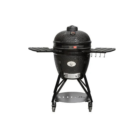 Met een roosterdiameter van 47 centimeter is deze barbecue perfect voor grote gezinnen. De barbecue is gemaakt van zeer hoogwaardig dikwandig cordieriet keramiek. Het keramiek is uitermate goed bestand tegen extreme hitte. De gietijzeren onderdelen zijn professioneel gepoedercoat. Uiteraard is het rooster van gemaakt van roestvrij staal. Hierdoor zult u zeer lang plezier beleven van deze Kamado. De barbecue is voorzien van extra grote wielen, en is dus eenvoudig verplaatsbaar. Voor de Keij Kamado zijn alle denkbare accessoires en uitbreidingen tegen zeer scherpe prijzen beschikbaar. Zo is er bijvoorbeeld het divide and conquer systeem, maar er zijn ook platesetters, deflectors, pizzastenen en gietijzeren roosters verkrijgbaar.