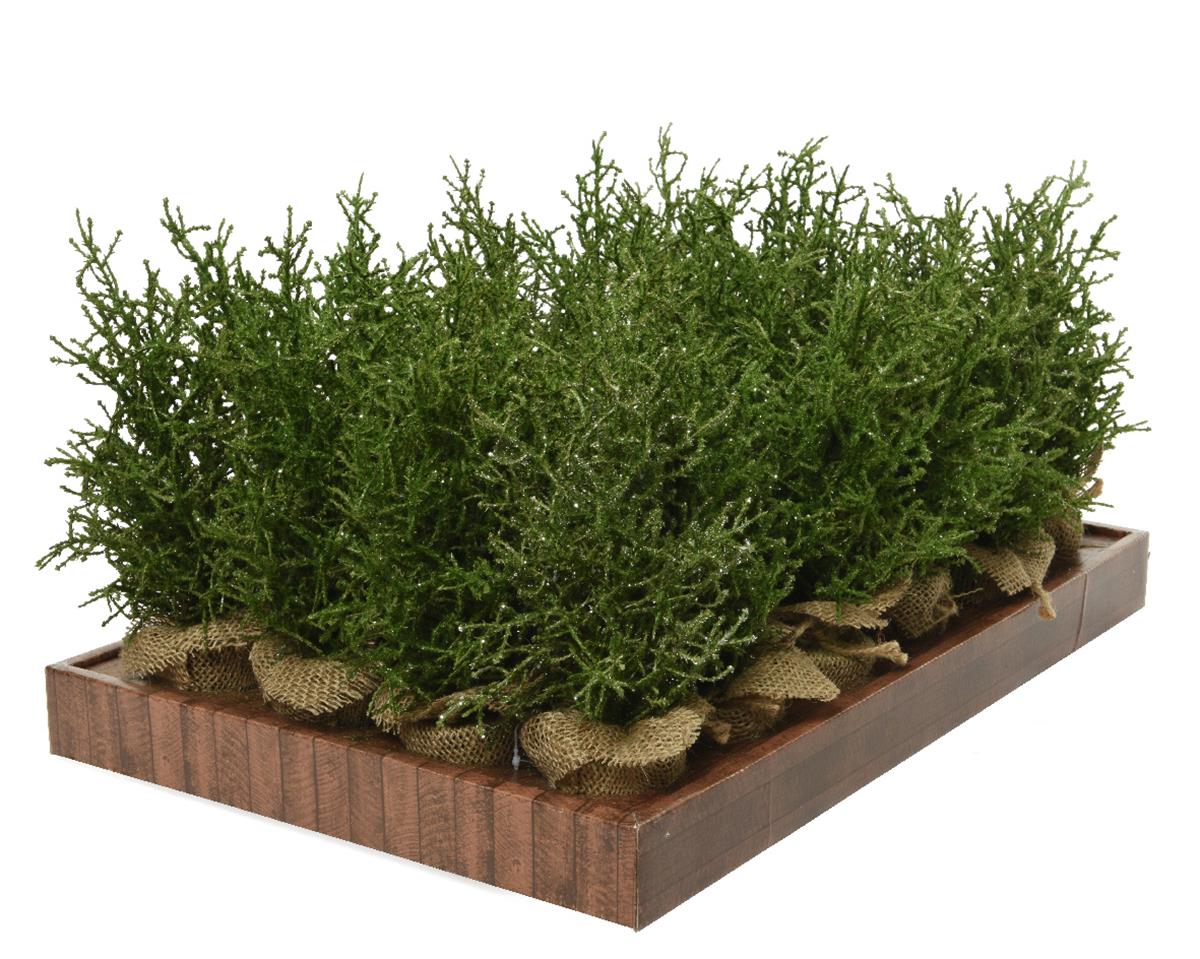 De takjes van deze kleine maar fijne kerstboom zijn versierd met zilveren glitters en om de pot zit een jute zakje. De kerstboom is 30 cm hoog, heeft een diameter van 12 cm en is dus ideaal om neer te zetten op tafel. De boom is alleen geschikt voor binnen.