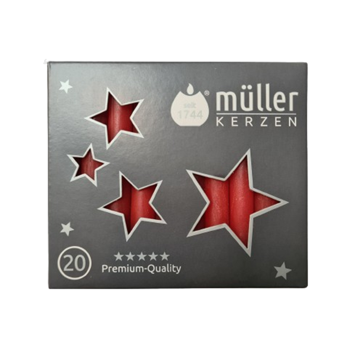 Kerstboomkaarsjes 12 cm lang x 1,2 cm dik - 20 stuks - rood