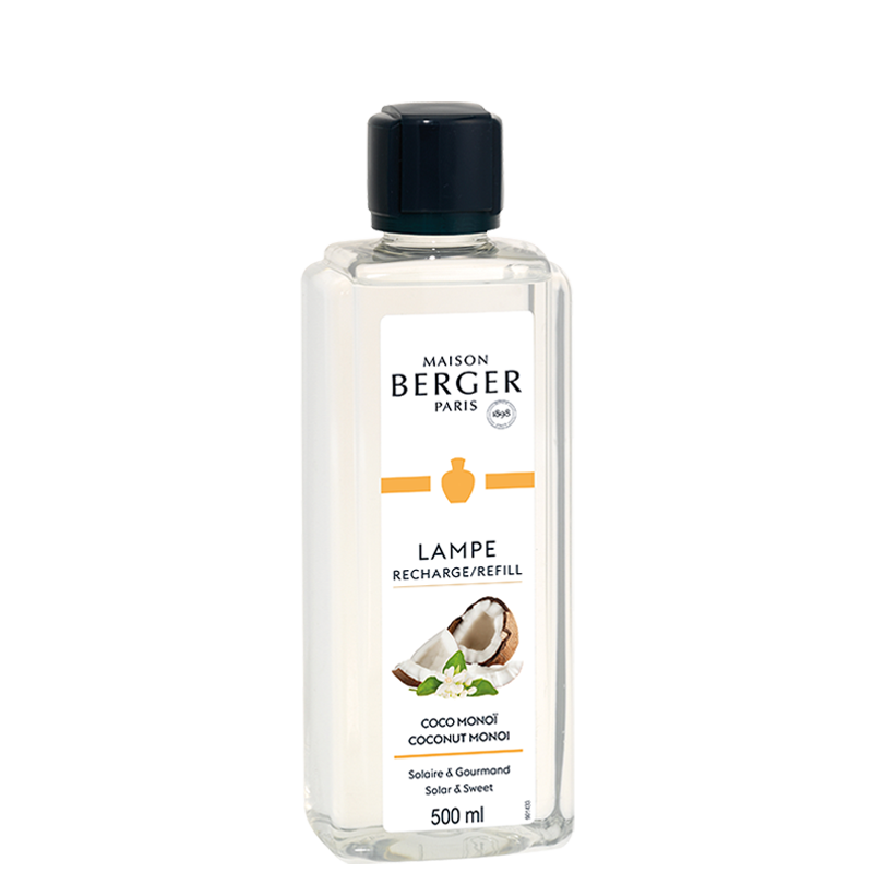 Deze Lampe Berger navulling brander 500 ml - Coconut Monoi is een fruitige en zomerse geur. Een zonnige geurcombinatie waarin het lieflijke facet van de tuberoos de diepte van het vanillestokje omarmt. Zon, zand en Polynesische gelukzaligheid op een basisnoot van kokoswater. Deze navulling van 500 ml is te gebruiken in een Lampe Berger brander naar keuze.