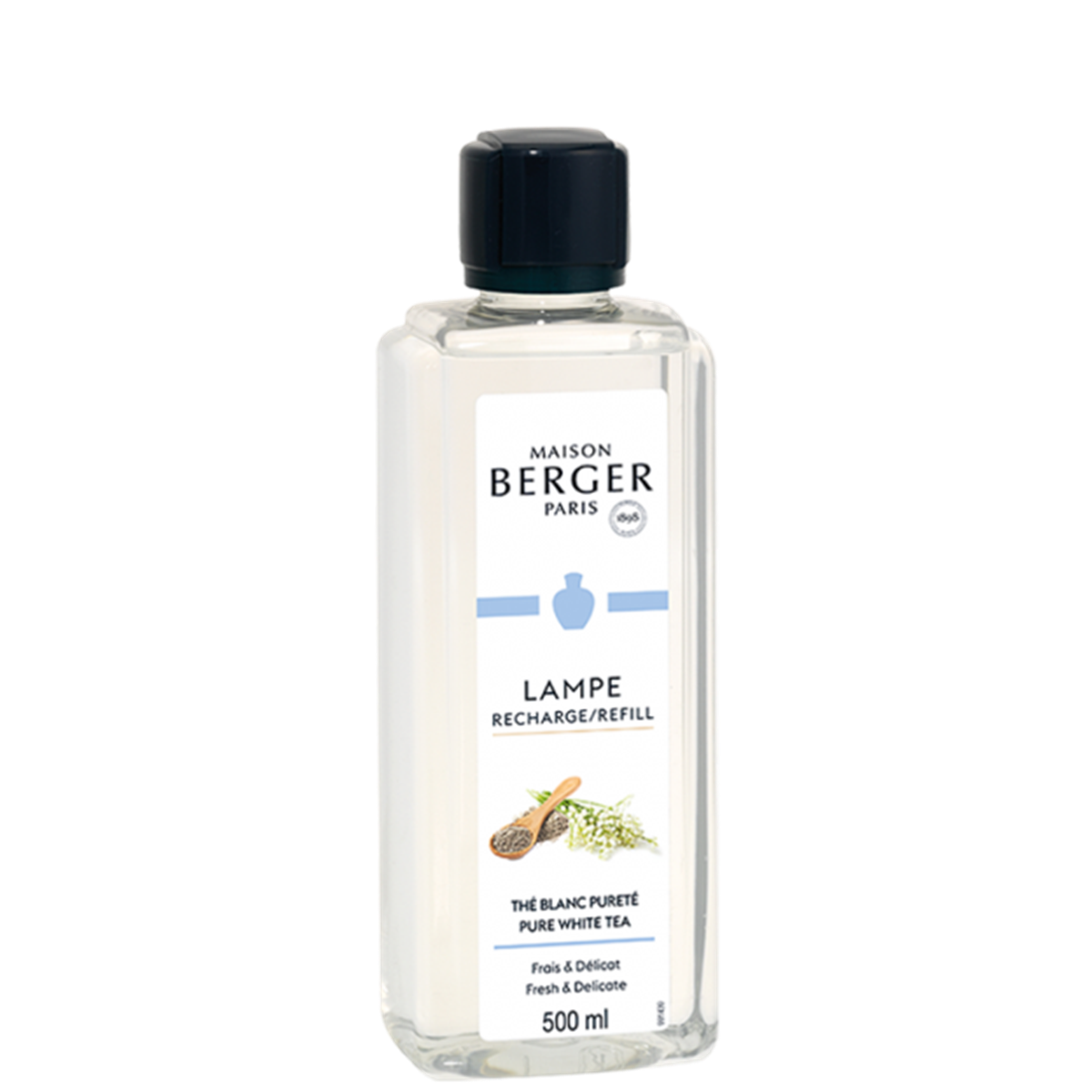 Deze Lampe Berger navulling brander heeft een inhoud van 500 ml en een pure white tea geur. Dit huisparfum geeft een delicate en verfijnde interpretatie van één van deze zwevende momenten waarop de natuur kan ons bieden. Dit is een stilistische samenstelling, voor een moment van pure rust. Sommige topnoten, bergamot en zwarte bes, zo eenvoudig als discreet. Een zuiver hart van witheid van zijn thee, brandschoon zoals een delicaat boeket lelietje-van-dalen, roos en jasmijn. Vervolgens een sluier van witte muskus afwikkelt, licht en omhult getint met een vleugje ceder.