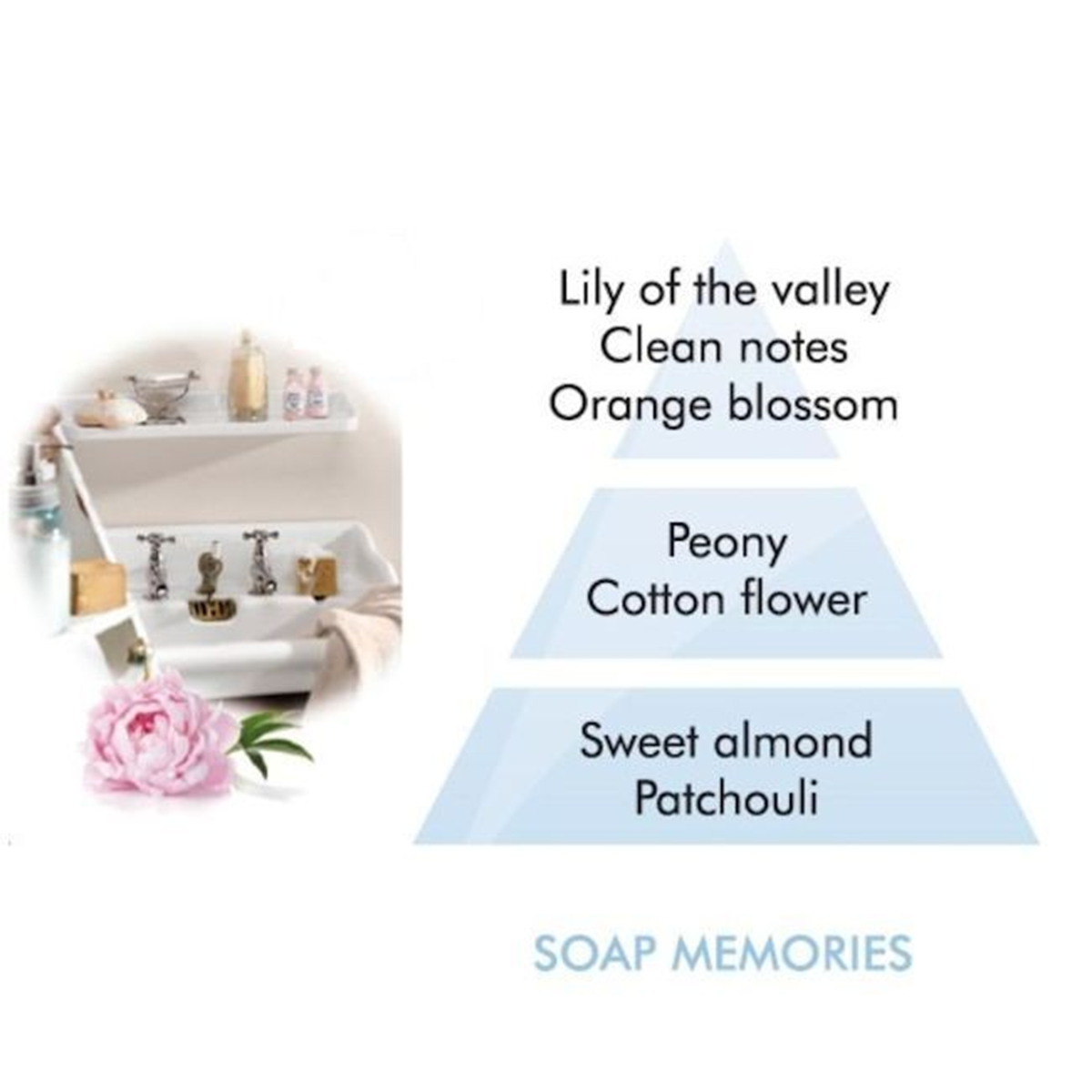 De geur van reinheid, een moment van pure olfactorische comfort die doet denken aan badderen. Een bloemig parfum met een mix van oranje-, pioen- en katoenbloesem en bovendien verrijkt met een hint van zoete amandel.