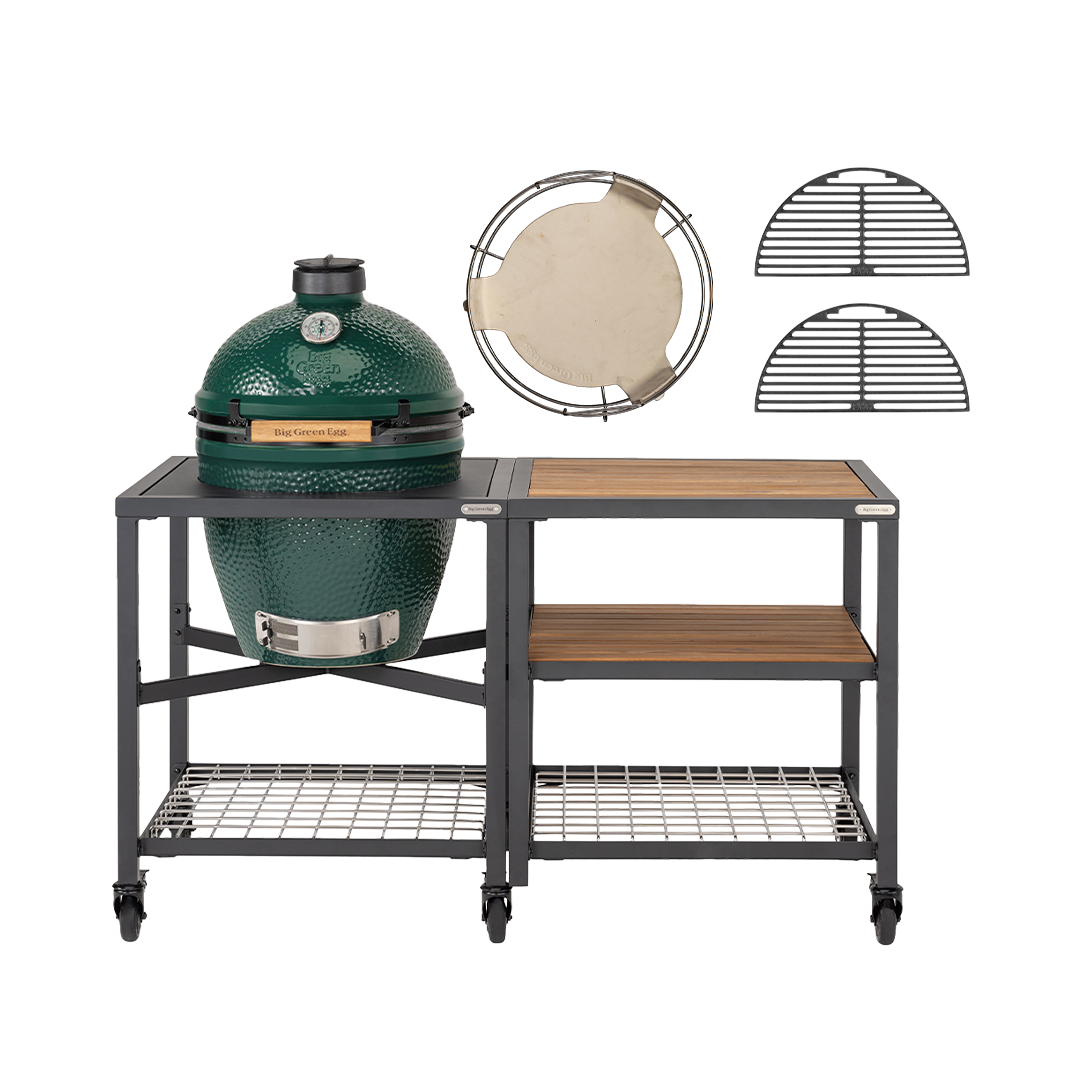 De Big Green Egg Large staat bekend om zijn veelzijdigheid en royale formaat. Net als bij andere modellen kan de Large, met de bijgeleverde convEGGtor, fungeren als oven, perfect voor langzaam garen op lage temperaturen. Dankzij het ruime oppervlak is dit model ook geschikt voor grotere accessoires zoals de Cast Iron Dutch Oven en de Flat Baking Stone, waardoor je eindeloos kunt variëren met gerechten.