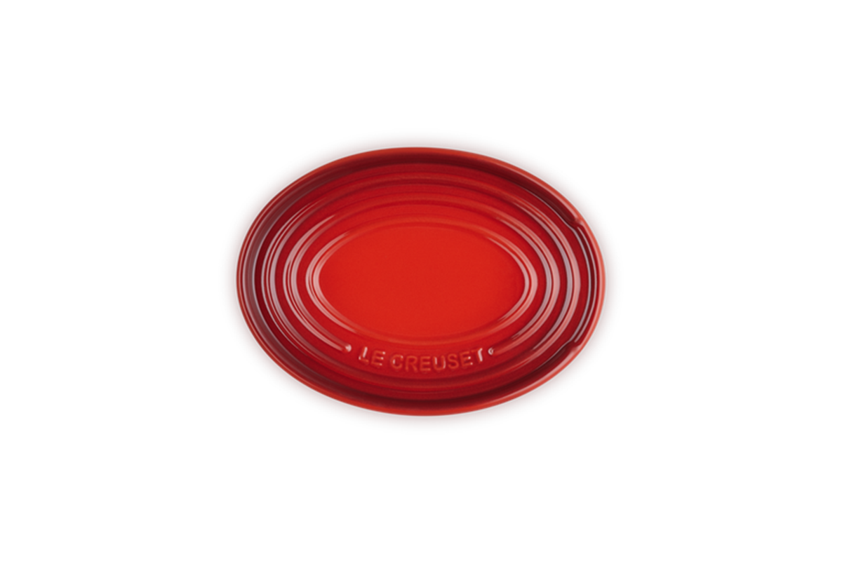 Deze handige ovale Le Creuset lepelhouder heeft een kersenrode kleur en is het ideale hulpje voor op het aanrecht. Plaats de houder tijdens het koken naast het fornuis en leg je lepel weg zonder alles vies te maken. Zo worden verdwaalde druppels opgevangen als je even niet aan het roeren bent. Met een lengte van 16 cm is de houder zelfs groot genoeg voor het grootste keukengerei. Ook handig: na gebruik kan hij zo de vaatwasser in. Uiteraard past het ontwerp van de houder perfect bij de rest van het Le Creuset servies.