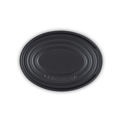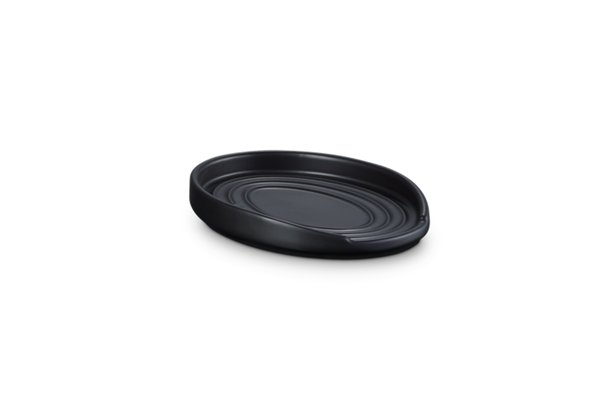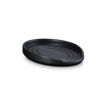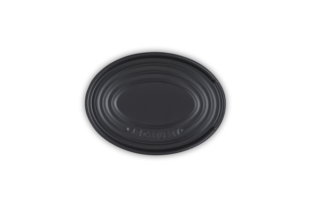 Deze handige ovale Le Creuset lepelhouder heeft een mat zwarte kleur en is het ideale hulpje voor op het aanrecht. Plaats de houder tijdens het koken naast het fornuis en leg je lepel weg zonder alles vies te maken. Zo worden verdwaalde druppels opgevangen als je even niet aan het roeren bent. Met een lengte van 16 cm is de houder zelfs groot genoeg voor het grootste keukengerei. Ook handig: na gebruik kan hij zo de vaatwasser in. Uiteraard past het ontwerp van de houder perfect bij de rest van het Le Creuset servies.