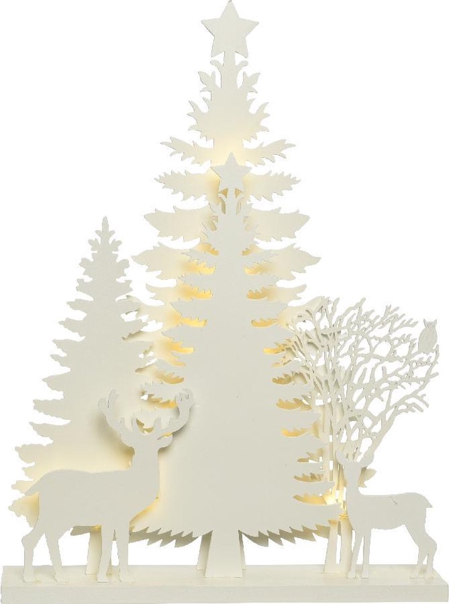 LED houten Kerstafereel - 30xh.40x5,5 cm - wit+warm wit