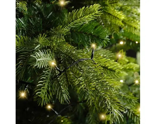 Deze Compact Kerstverlichting is ideaal om een kleine kerstboom van sfeervol licht te voorzien. De verlichting bestaat uit een 7,5 meter lang groen snoer met daaraan 350 LED lampjes met soft gold licht. De totale lengte van het snoer is 12,5 meter, inclusief 5 meter aanloopsnoer en adapter. Hiermee is de lichtstreng geschikt voor een kerstboom van 120-150cm. Dankzij de IP44 adapter zijn deze lampjes zowel binnen- als buitenshuis te gebruiken. Daarnaast is deze kerstverlichting voorzien van een dimmer- en timerfunctie. Op de adapter zit een knopje, waarmee eenvoudig tussen de 5 lichtsterktes te switchen is. Door de timerfunctie brandt de verlichting 8 uur lang en gaat daarna automatisch voor 16 uur uit. De lampjes gaan de volgende dag automatisch weer aan op het tijdstip waarop ze de eerste keer zijn ingeschakeld. De ideale verlichtingsset voor in de kerstboom!