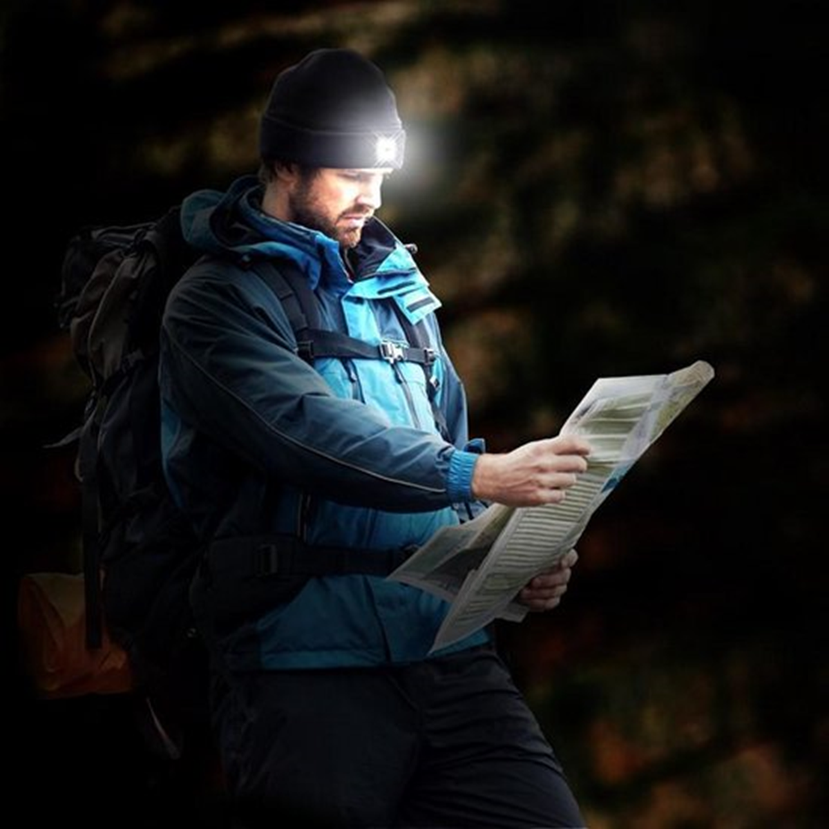 Deze modieuze muts, met led-verlichting, is de oplossing! Hij zorgt ervoor dat jij goed zicht hebt, bijvoorbeeld als je in het donker iets zoekt in de schuur, en dat anderen jouw goed kunnen zien. Modieus en toch veilig.