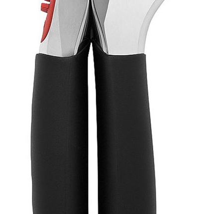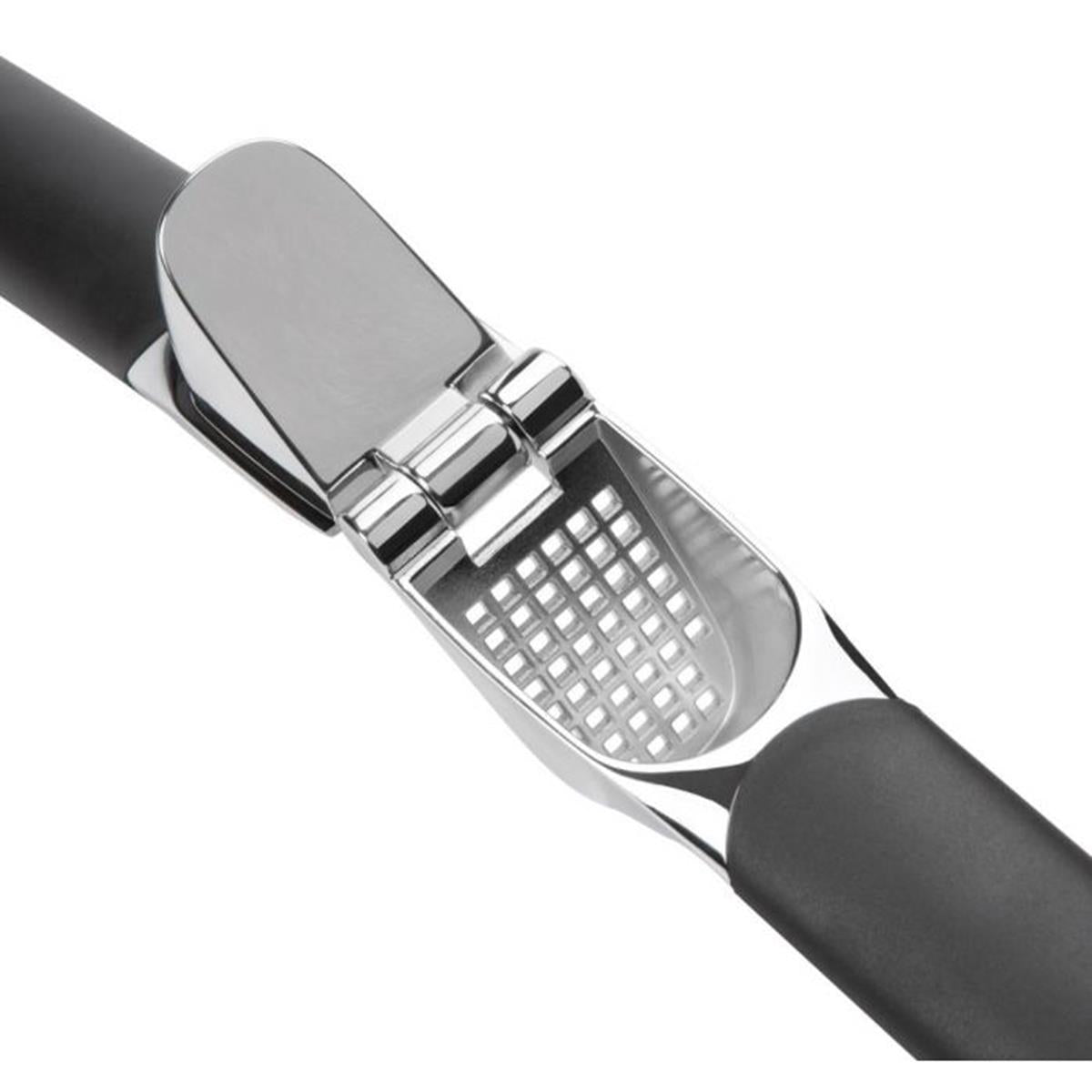 Met deze OXO Good Grips knoflookpers voegt u in een handomdraai lekker verse knoflook toe aan uw gerecht. De pers is beschikt over een stevige, gegoten zinkconstructie en een ruim knoflookreservoir. Dat maakt de pers erg sterk waardoor je knoflook kunt persen met één simpele kneep. Het efficiënte gaatjespatroon drukt de knoflook gemakkelijk door de pers. Een ingebouwd schoonmaaksysteem stelt je in staat de pers gemakkelijk schoon te maken; klik simpelweg de hendels open om de overige knoflook weg te halen. De zachte handvaten zijn licht gebogen voor comfort en absorberen de druk tijdens het knijpen. De pers heeft een afmeting (bxdxh) van 5,7 x 3,2 x 16,7 cm en is vaatwasserbestendig.