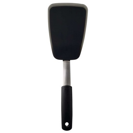 Deze spatel van OXO Good Grip is extra flexibel en heeft een dunne, flexibel rand die gemakkelijk onder voedsel glijden. Dit maakt de spatel perfect voor het draaien van visfiles, eieren, pannenkoeken, hamburgers en meer. De spatel heeft een siliconen buitenlaag, deze is hittebestendig tot maar liefst 300ºC en veilig voor anti-kleef kookgerei. De kern is gemaakt van flexibel roestvrijstaal voor stabiliteit en gebruiksgemak. Zo combineert deze spatel de voordelen van siliconen met de kracht van roestvrijstaal. De comfortabele anti-slip handgreep biedt een stevige greep, zelfs wanneer je handen nat zijn. De greep is bovendien voorzien van een praktisch ophangoog. Na gebruik mag de spatel in de vaatwasmachine.