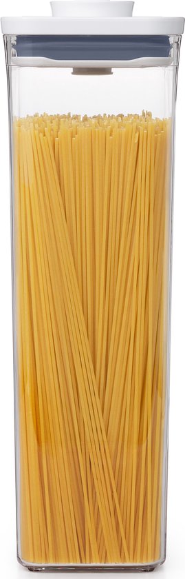 Deze kleine hoge vierkante voorraadbus 'POP 2.0' van OXO Good Grips sluit luchtdicht af en is ideaal voor het bewaren van droge voedingswaren. Zoals bijvoorbeeld spaghetti en lasagna. Hij doet ook perfect dienst als handige opbergdoos in de garage, naairuimte of speelkamer.