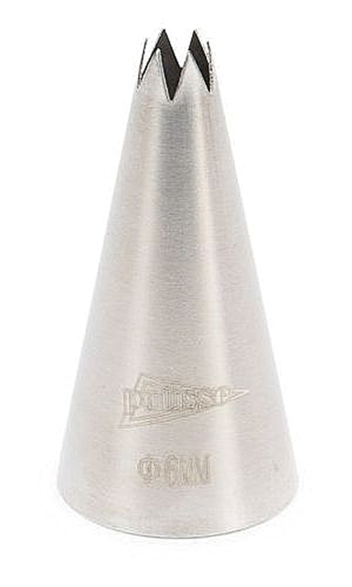 Patisse spuitmond gemaakt van roestvrij staal en een opening van 9 mm. U gebruikt de spuitmond voor het decoreren van cupcakes of taarten met slagroom of een andere substantie. Wanneer u dit spuitmondje gebruikt in uw slagroomspuit of spuitzak, zal de slagroom een mooie gekartelde lijn vormen op uw taarten en/of cupcakes. Bovendien kunt u dit spuitmondje in bijna iedere spuitzak gebruiken.