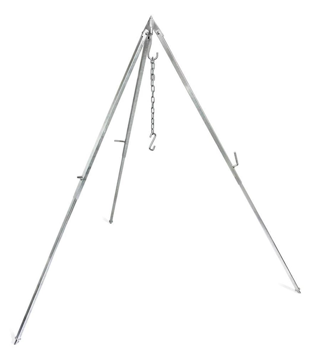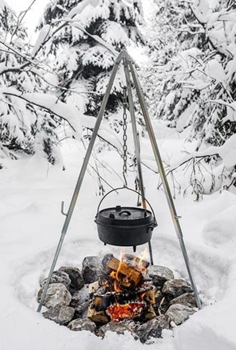 Deze Petromax driepoot is gemaakt van sterk staal waardoor je kan genieten van koken in de buitenlucht. Hang een grillrooster of een Petromax Dutch Oven eenvoudig op aan de haak van de driepoot en genieten maar! Dankzij de verstelbare ketting kan de afstand tussen de pot en het vuur op elk moment worden gewijzigd. Daarnaast zorgen de schuine pootjes ervoor dat het statief stevig staat op de meest uiteenlopende vloeren. Bovendien is elke poot afzonderlijk en traploos in hoogte verstelbaar, zodat oneffenheden in de grond eenvoudig kunnen worden gecompenseerd.